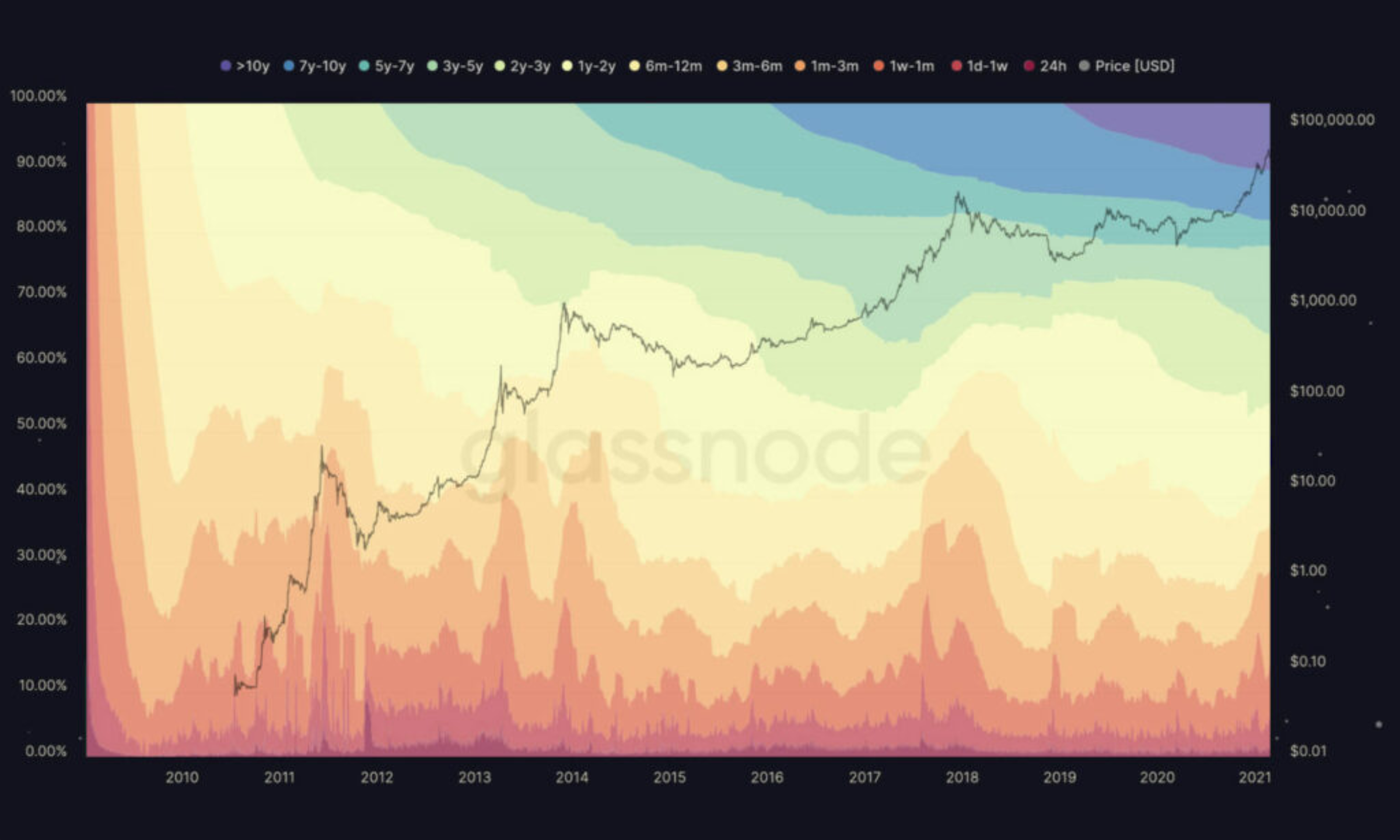 Imagine the HODL waves chart for an interstellar blockchain with a 500,000 year history. [Source]