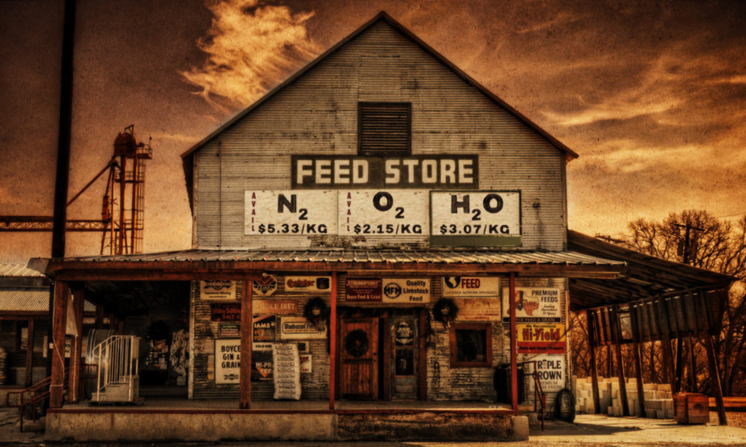 A Mariner Valley feed store, circa 2130. All prices are in $atoshis per kilogram. The economy of Mars will initially run on bitcoin. Martians can hold and transact in bitcoin as well as on the higher layer lightning networks.