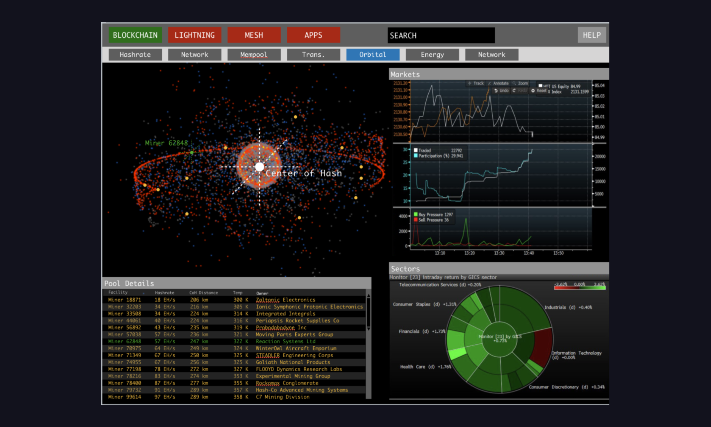 Screenshot of a Bloomberg terminal in 2130. Bitcoin’s center of hash is near the Earth’s center, slightly shifted towards the location of Moon which hosts 15% of all bitcoin miners. (Source)