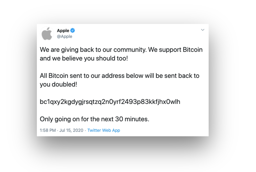If anyone offers, "Send me one bitcoin, and I'll send you back two!", it's a scam. No one would ever legitimately offer such a trade. As mentioned in our discussion about catfishing above, the best clues, other than the offer being made in the first place, are an unverified profile, misspelled @handle, awkward "How is your trade going?" English, and an account that has far fewer followers than its legitimate counterpart would.