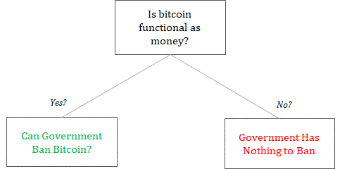 The idea that somehow bitcoin can be banned by governments is the final stage of grief, right before acceptance. The consequence of the statement is an admission that bitcoin “works.” In fact, it posits that bitcoin works so well that it will threaten the incumbent government-run monopolies on money in which case governments will regulate it out of existence to eliminate the threat. Think about the claim that governments will ban bitcoin as conditional logic. Is bitcoin functional as money? If not, governments have nothing to ban. If yes, then governments will attempt to ban bitcoin. So the anchor point for this line of criticism assumes that bitcoin is functional as money. And then, the question becomes whether or not government intervention could successfully cause an otherwise functioning bitcoin to fail.