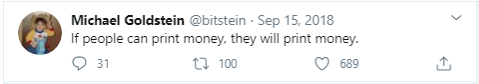 Bananas grow on trees. Money does not, and bitcoin is the force that reawakens everyone to the reality that was always the case. Similarly, there is no such thing as a free lunch. Everything is being paid for by someone. When governments and central banks can no longer create money out of thin air, it will become crystal clear that backdoor monetary inflation was always just a ruse to allocate resources for which no one was actually willing to be taxed. In common sense, there is no question. There may be debate but bitcoin is the inevitable path forward. Time makes more converts than reason.