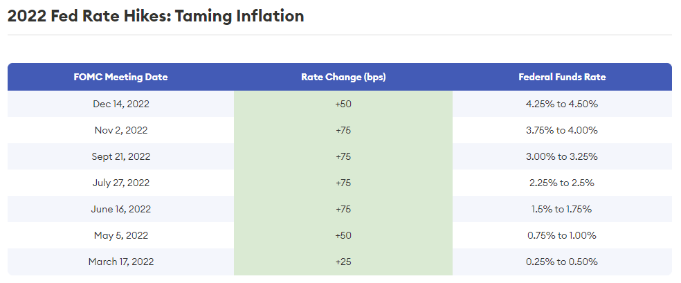 In response to this acceleration, the Federal Reserve signaled to the market that it would pursue a concerted effort to reduce inflation in the Fall of 2021, and it ultimately began to raise interest rates (from zero), as a means to that end, in March 2022. Cumulatively, the Fed raised interest rates seven individual times in 2022 to the tune of 4.25% in total rate increases, with a current targeted Fed Funds rate (the rate off of which virtually all other market interest rates are set) between 4.25% and 4.50%. At these levels, the current Fed Funds effective rate is higher than any level dating back to just before the financial crisis in early 2008.