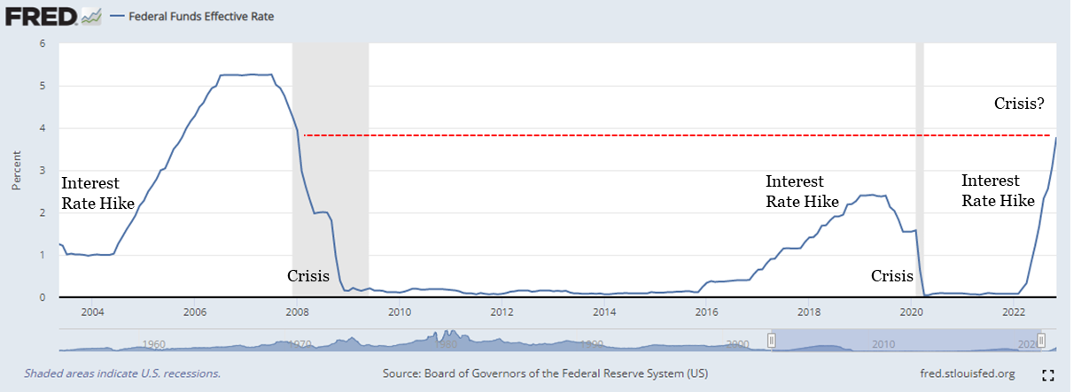 Fed Funds Effective Rate (2004 to 2022)
