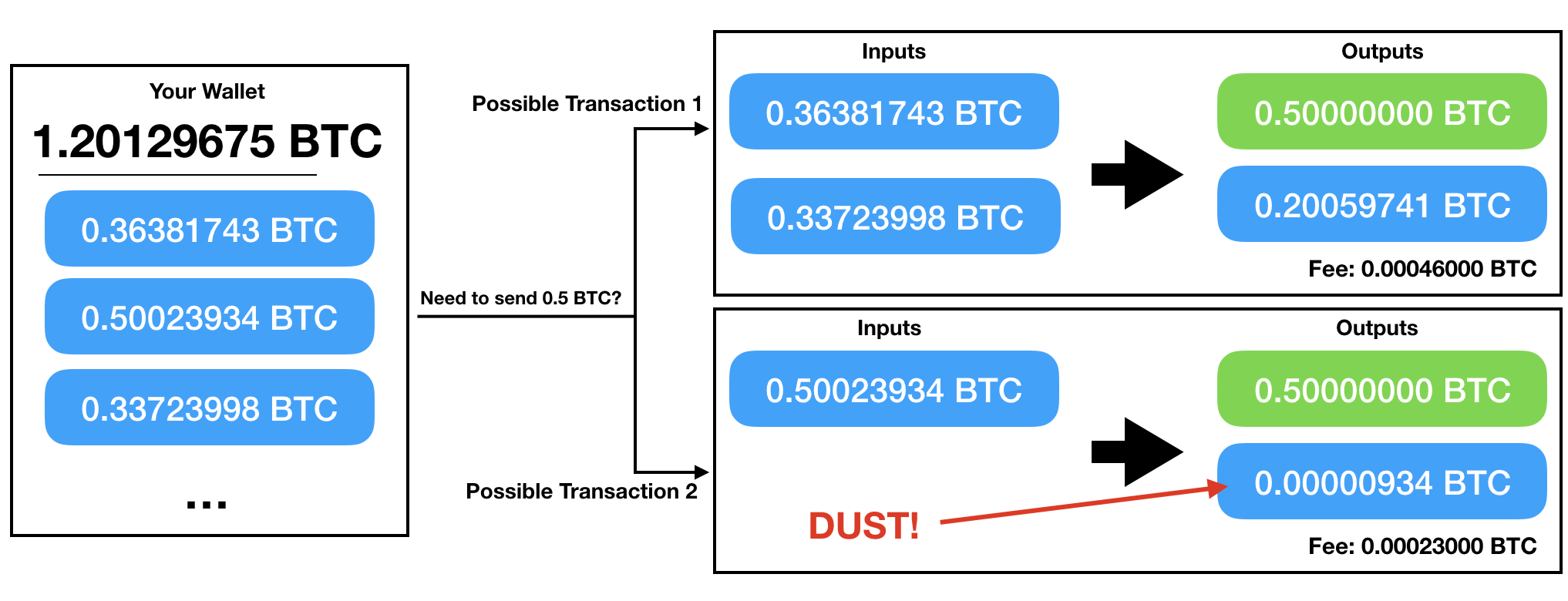 This means that wallets can’t help but sometimes create low-balance, dusty UTXOs. UTXO management in wallets is a difficult optimization problem with no globally optimal solution for all users. This is the ultimate origin of dust.
