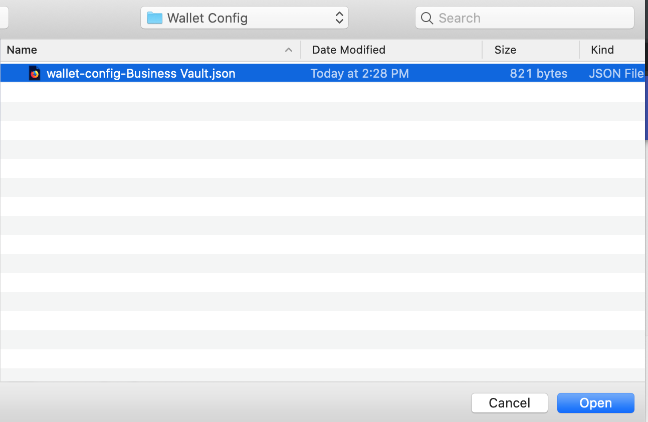 - Select import wallet configuration and open the JSON file. You can also simply copy and paste the extended public keys from the file you saved directly into Caravan.