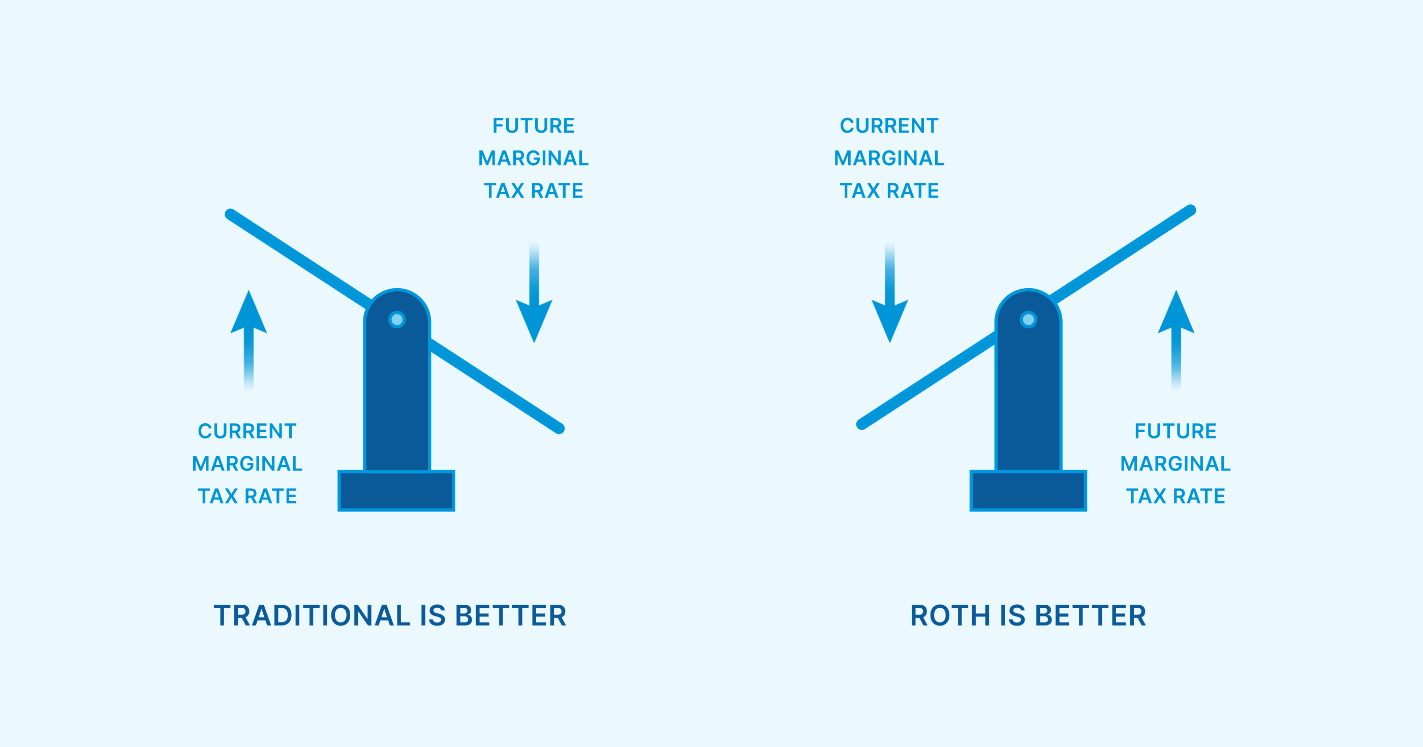 Revisiting the brackets and buckets discussion from above, Wayne’s current income (high bracket) is much greater than his expected future income needs (low bracket). If he were to convert any of his existing retirement assets to Roth, he would be paying a higher rate than if he had just waited to pull it in retirement. From this perspective, it may be wiser to keep the assets in a Traditional pre-tax account and not convert to Roth.