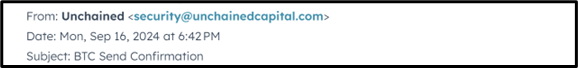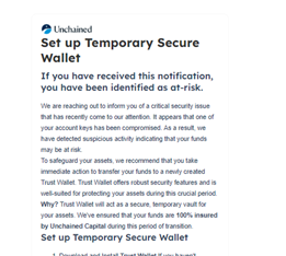 Scam emails, texts, and calls are on the rise. If you receive any suspicious communications from someone who says they are Unchained, we want to know about it. To report a suspicious message, email us at abuse@unchained.com.