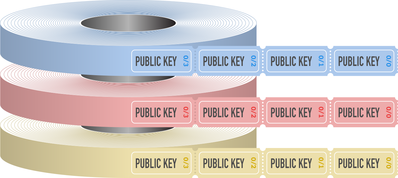 There are many existing analogies out there to describe xpubs, but here I propose a novel one. Most people have some experience with the roll of raffle tickets, whether at a carnival, county fair, or a charity event. It turns out that we can use this roll of tickets as a useful analogy to understand xpubs.