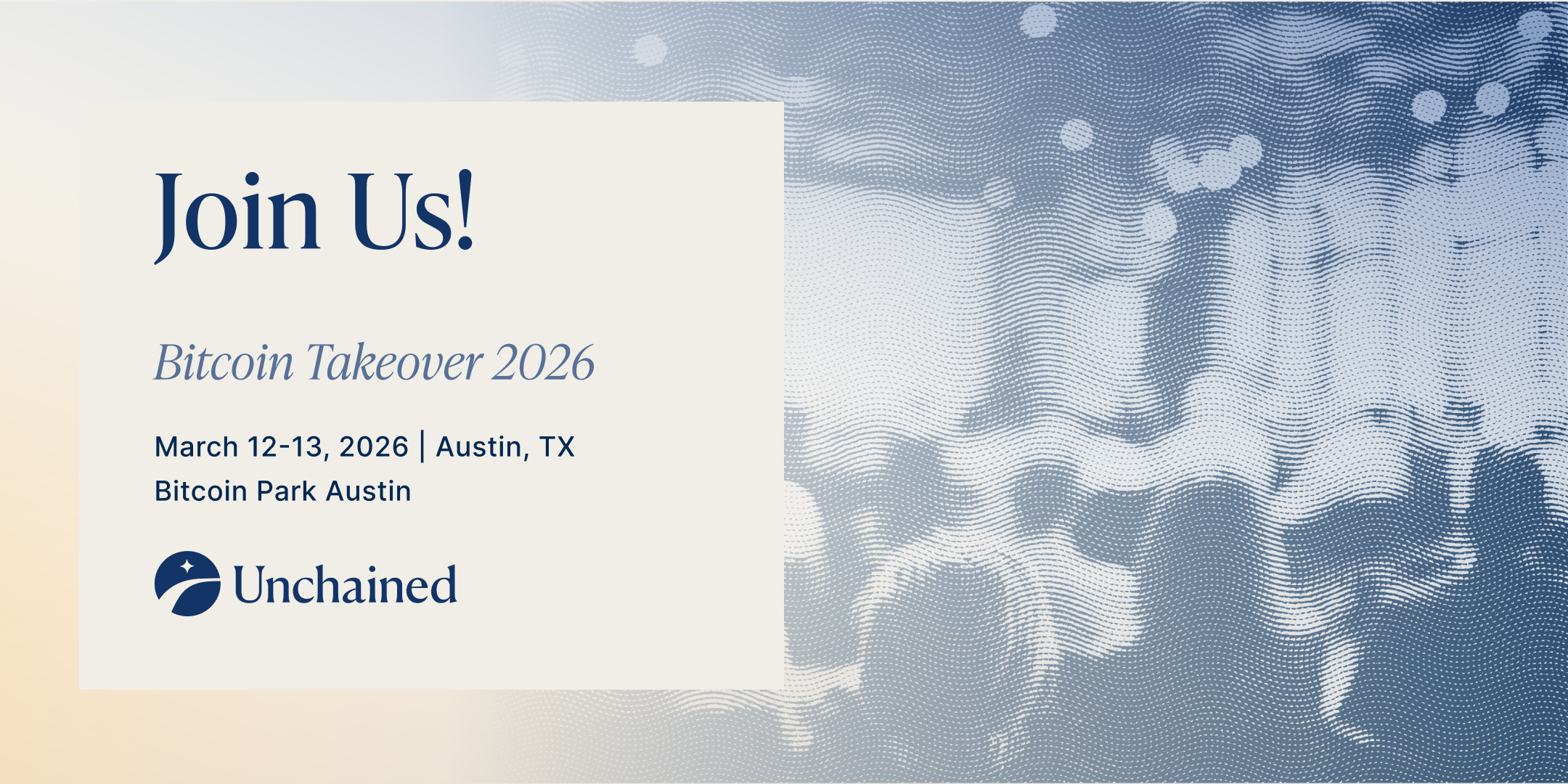 Come connect with us a Bitcoin Takeover in Austin, presented by bitcoin park and sponsored by Unchained.
