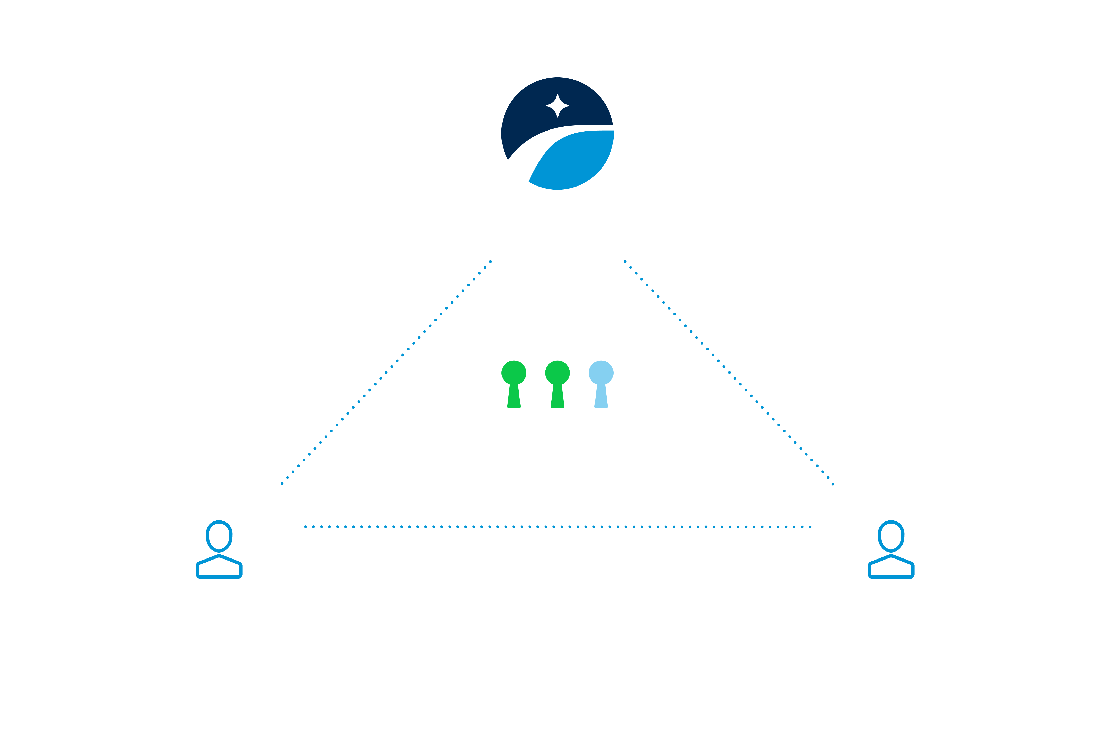 Most collaborative custody models today involve just two parties: the client, who holds a majority of keys, and the platform provider, who typically holds just one key and serves as a key agent to the client. This is hub-and-spoke collaborative custody—each platform provider is a hub, serving as a key agent to thousands of clients separately.