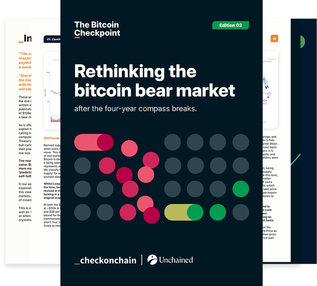 Welcome to the second edition of The Bitcoin Checkpoint, which will be our study of this bear market process, and it is proudly brought to you by the teams at Checkonchain and Unchained.